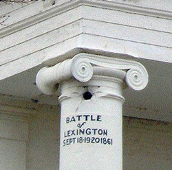 During the Battle of Lexington in 1861, the courthouse was fired upon, leaving a cannonball in one of the columns.