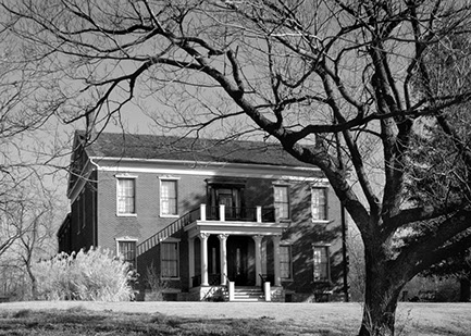 Across the street on the corner is 1840's built Greek Revival brick home, now called Morgen Manor, that was constructed on part of a stone foundation of a much earlier log cabin. Several of the hand-hewn beams and hand forged nails were used in the construction of the existing house. This house’s abstract had five slaves listed as residing there during the mid-1800.